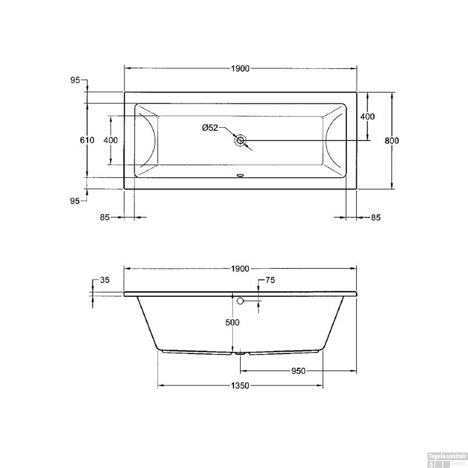 Dit rechthoekige duobad van Plieger is extra diep, waardoor u zelfs met twee personen helemaal kunt onderdompelen in het bad. Het bad is 190 cm lang, 80 cm breed en wel 50 cm diep. Het materiaal waarvan het duobad is gemaakt is acryl en de kleur is wit.