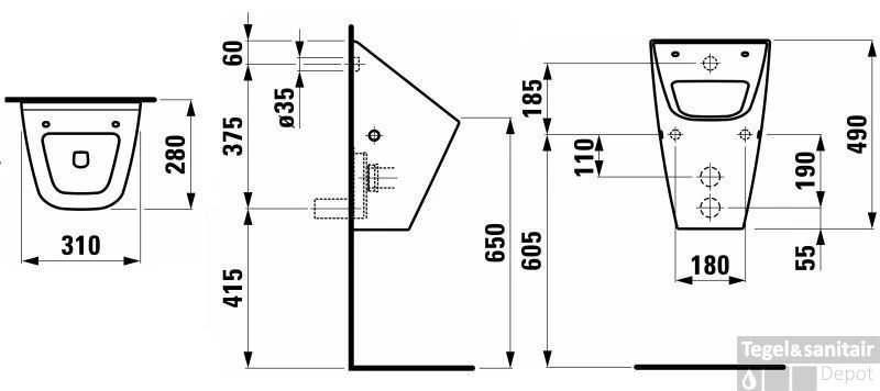 | Aanvoer spoelwater | Achterzijde |