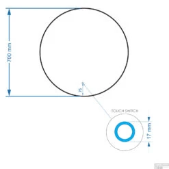 De spiegel is 80 cm breed, heeft een hoogte van 70 cm en een glasdikte van 4 mm. Verder bevat de spiegel een touch knop waarmee u de verlichting eenvoudig kunt bedienen en is voorzien van een knop voor geïntegreerde spiegelverwarming.