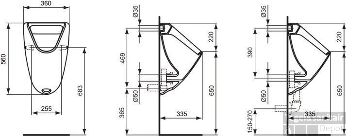 Specificaties Urinoir Ideal Standard Eurovit met Achterinlaat Keramiek 56×23.4×33.5 cm Wit: